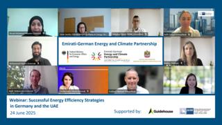 The Emirati-German Energy and Climate Partnership hosted a webinar to exchange with policy makers and technology companies on successful energy efficiency measures for industry and buildings in Germany and the United Arab Emirates (UAE). The speakers presented technologies and initiatives to advance energy efficiency, followed by a panel discussion on enabling conditions for successful implementation.